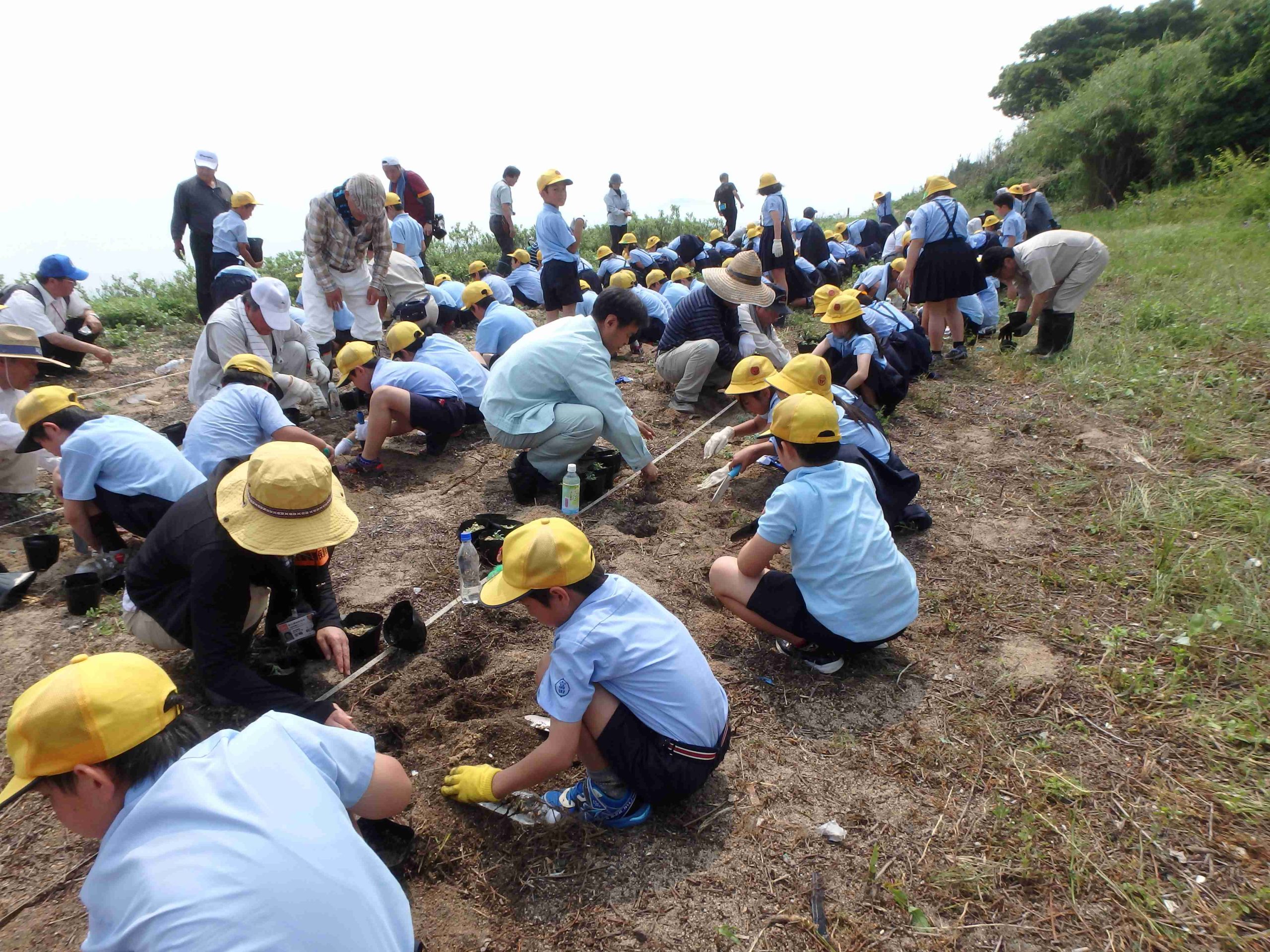 <Linaria seed transplantation. Tomita Elementary students participate>